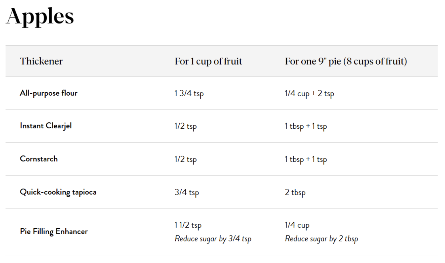 Figure 2: Chart of thickener ratios for apple pie [3].